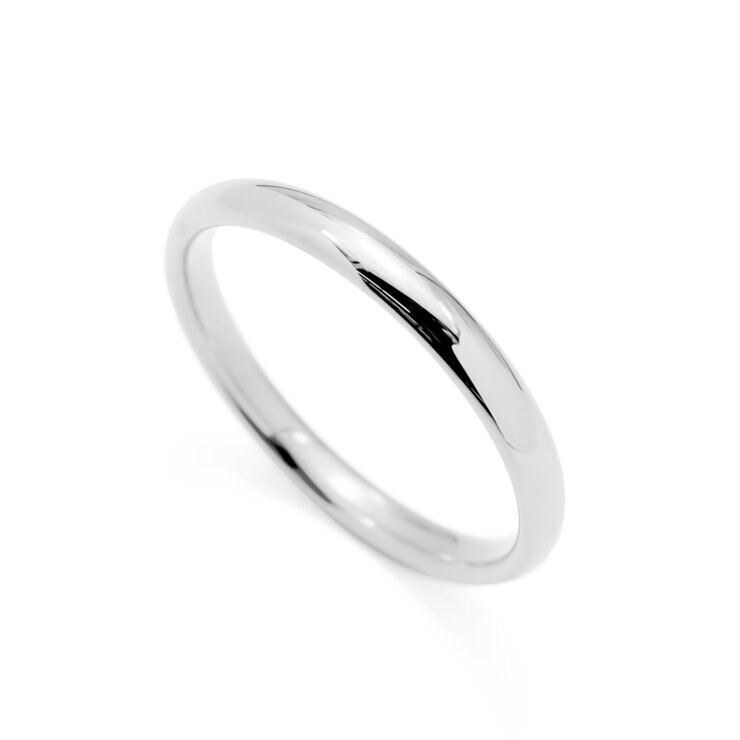 表面はミラー仕上げ、優しい丸みと程よい厚みが特徴の、シンプルで正統派な飽きの来ないデザインのリングです。