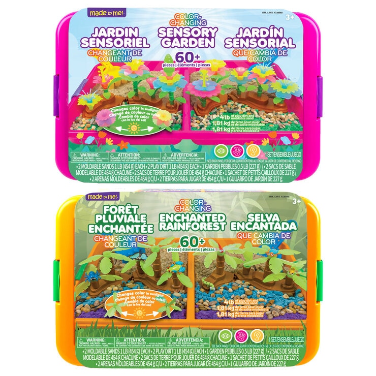 触感(センソリー)遊びで探求や学習に役立つ センソリー・プレイセット!これらの 60 ピースの感覚遊びセットは、3 歳以上のお子様が実際の遊びを通じて発見、創造、成長できるように設計されています。それぞれのボックスの中には、楽しく学べるための宝庫が待っています。こねて伸ばしたりできる色のプレイサンドで、手先の動きや創造性を高めましょう。楽しみ方はいろいろ!土や砂の感覚で遊びましょう。お子様と一緒に、いろいろな感覚を見つけたり試したりする遊びをしましょう!センソリー・プレイボックスは、子供の無限の創造性を育むだけでなく、大人にとっては、散らかりにくく片づけやすい遊び道具と便利な収納を提供します。遊び終わったら、片づけは中身を箱の中に入れるだけです!