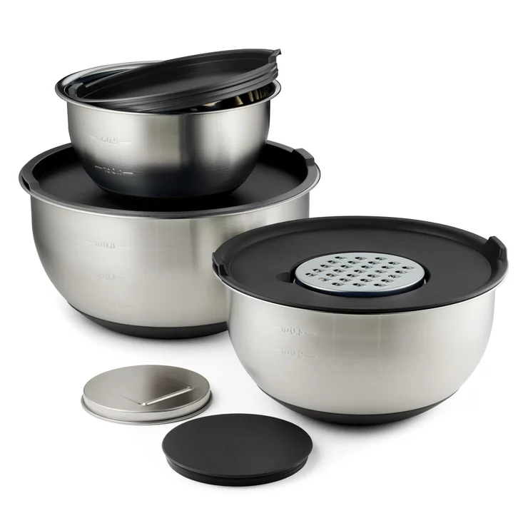 ● セット内容:3クォート、5クォート、8クォートのミキシングボウル(蓋付き)、おろし金、スライサー用インサート。