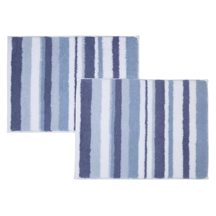 WELHOME Ezlon Bath Rug 45cm x 60cm 2PC Blue Stripe