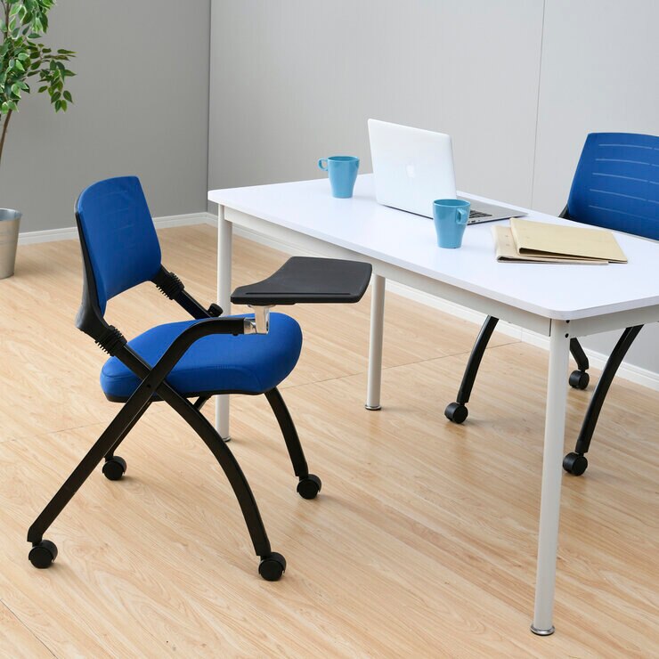 YAMAZEN キャスター付きミーティングチェア メモ台付き ブルー