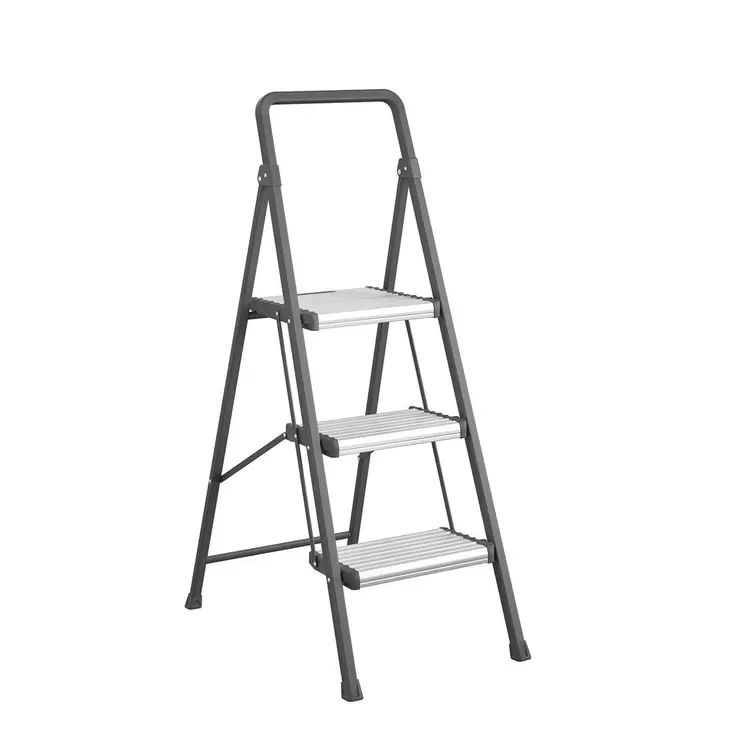 COSCO の 3 段折りたたみ式ステップスツールで家事の負担が軽減。モダンなデザインで、重さはわずか 約4.7キロのこの軽量ステップスツールは、持ち運びや取り扱いが簡単です。大きなプラットフォームは、最上段で作業するための安全で安定した表面を提供し、片手でリリースできることにより、簡単に折りたたんだり広げたりできるので、収納に便利です。傷がつきにくい脚の先端が床面を傷や擦り傷から守り、耐久性のあるスチール フレームが家事の強度を確保します。