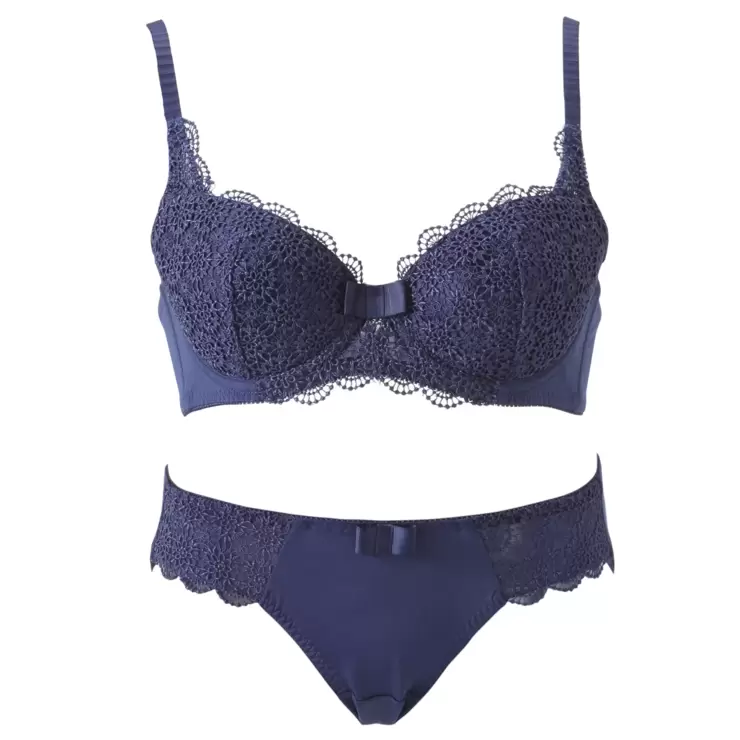 TRIUMPH INTERNATIONAL JAPAN BRA & SHORTS SET CHEMICAL LACE DARK NAVY C70