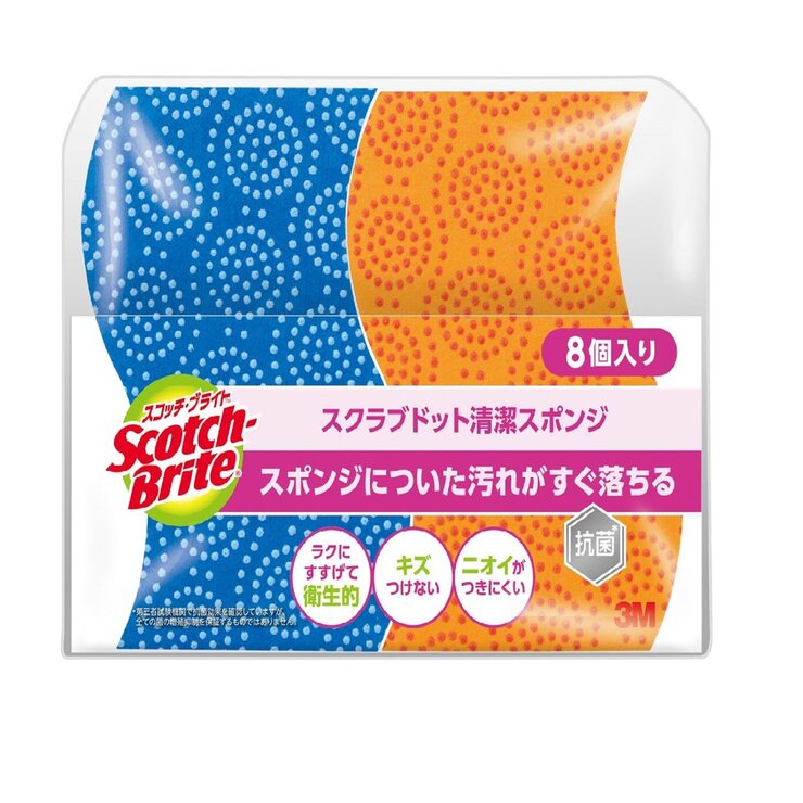食べかす汚れ等が目詰まりしにくく、さらに汚れ離れを促す特殊な加工を施している新開発のファブリックを使用したキッチンスポンジです。