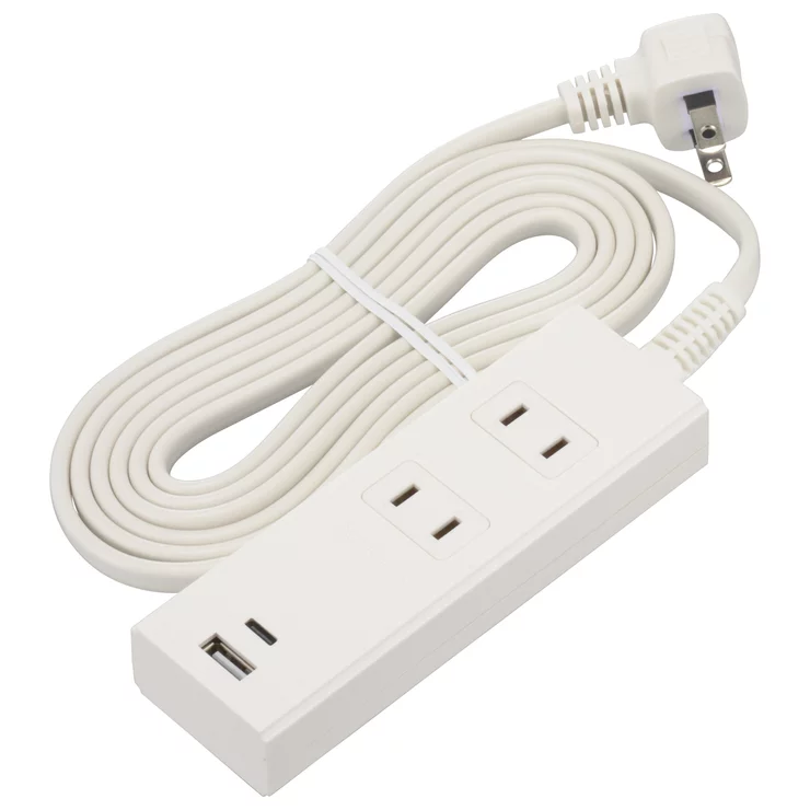 オーム電機 2口 PD対応USBポート付きタップ 2m ホワイトHS-TU22PD23-W/ブラック HS-TU22PD23-K