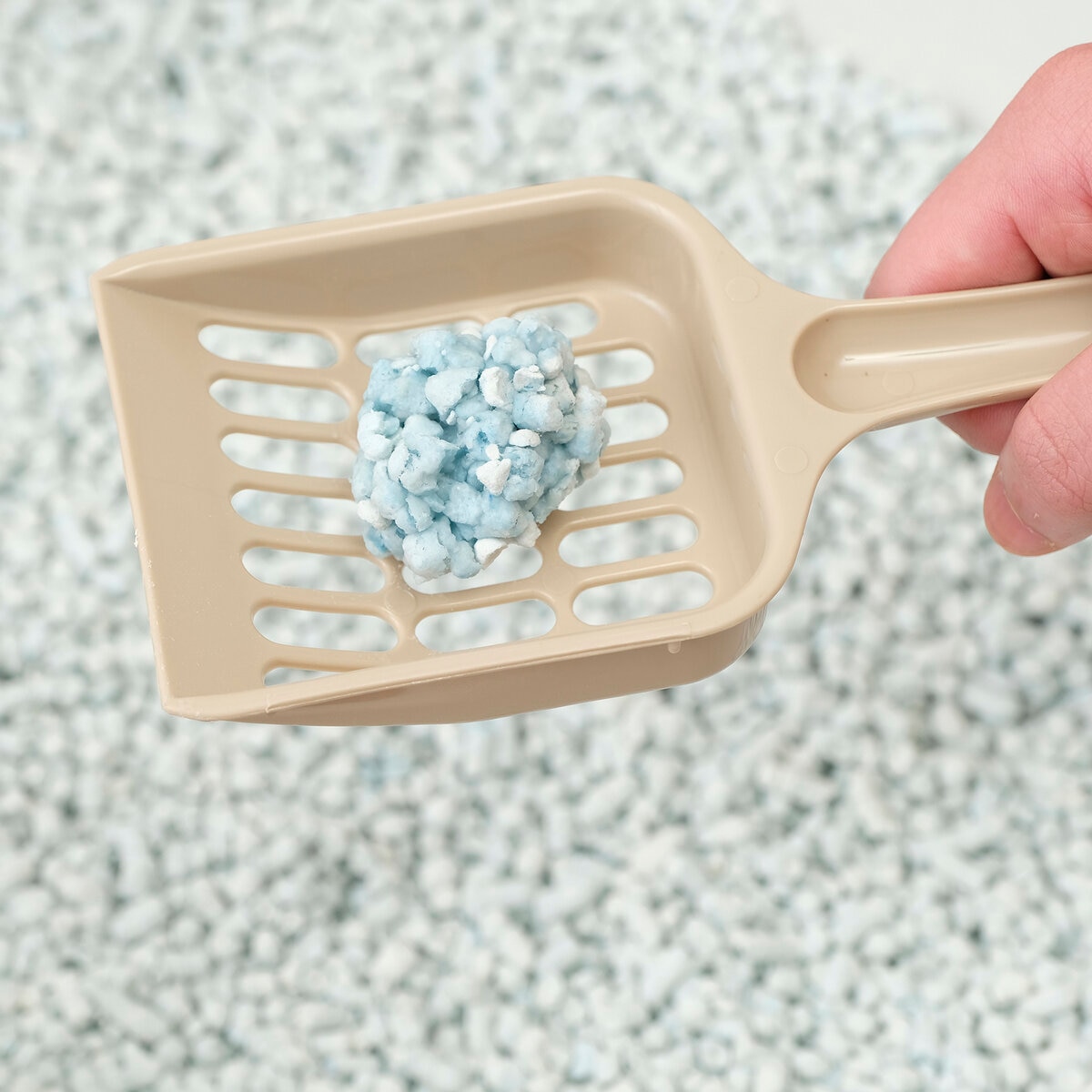 おしっこでぬれた部分だけがブルーに変わるので、汚れがわかりやすく、素早くしっかりと固まるので無駄がなく経済的です。