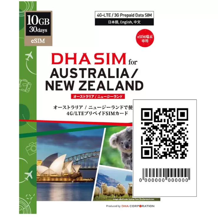 DHA eSIM for オーストラリア/ニュージーランド 30日/10GB/DHA-SIM-220