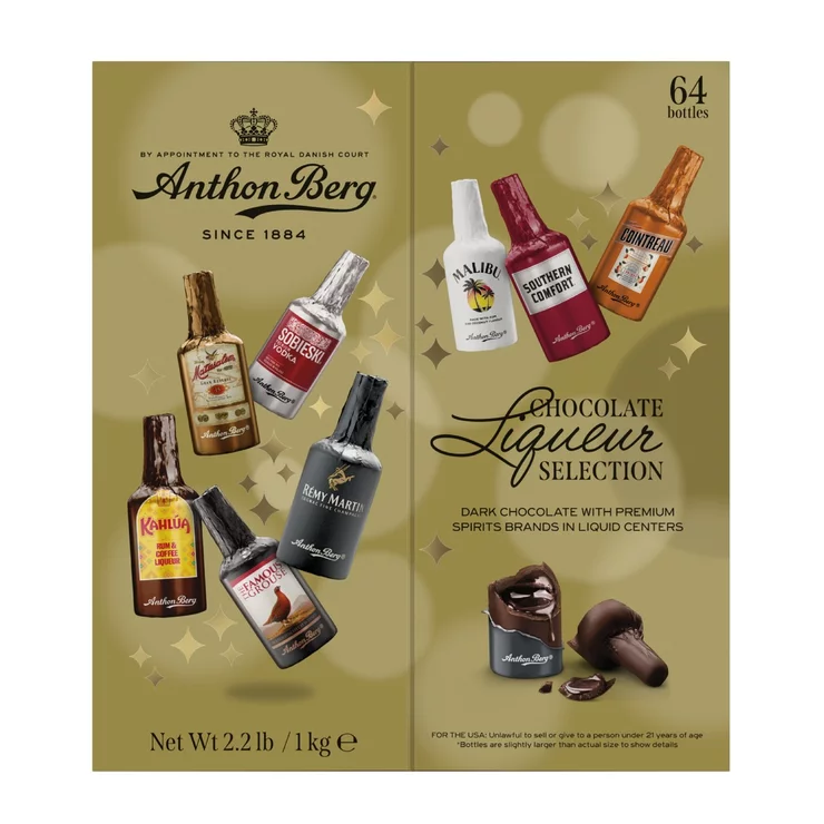 1884年創業、デンマーク王室御用達の老舗アンソンバーグ社はリカーチョコレートが特に有名です。世界の名酒をボトル型のダークチョコレートで包んだ、大人のくつろぎ時間にふさわしい逸品をお楽しみください。