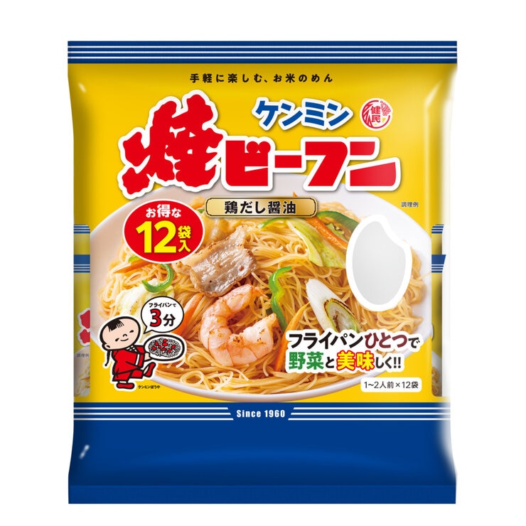 - フライパンひとつで3分蒸し焼きするだけで簡単に調理できる焼ビーフン