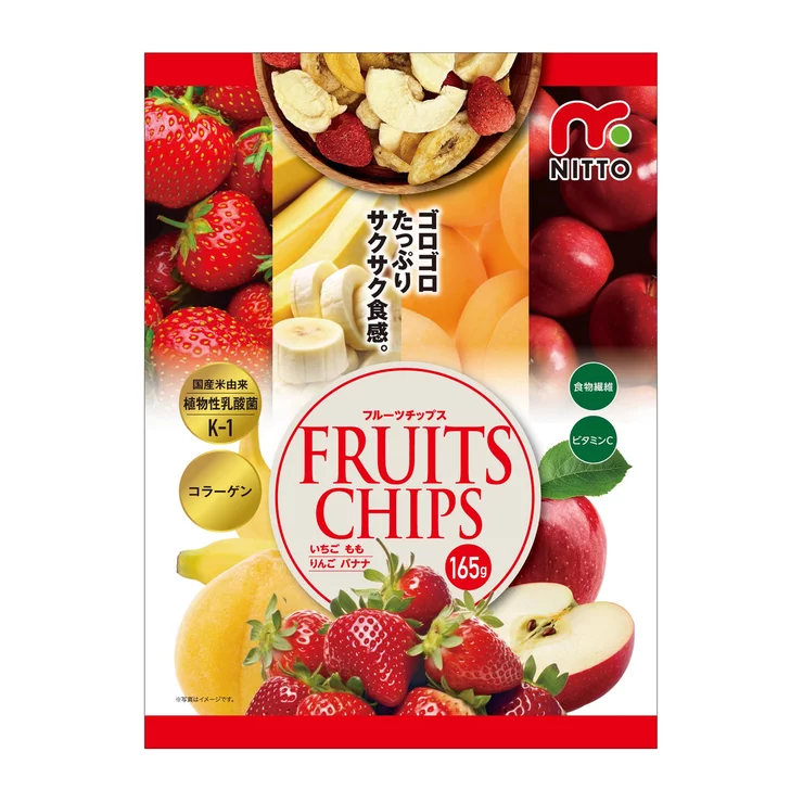 いちご、黄桃、りんご、バナナの4種のフルーツを、そのままサクッと軽いチップスに仕上げました。いちごは、フリーズドライ製法で仕上げ、風味や香り、栄養素をそのまま閉じ込めました。黄桃・りんご・バナナは、バキュームフライ製法により、素材本来の“風味”や“香り”を損なうことなく、軽やかでサクサクとした食感に仕上げています。フルーツ本来の豊かな香りと甘みをギュッと凝縮し、自然なおいしさをお楽しみいただけます。