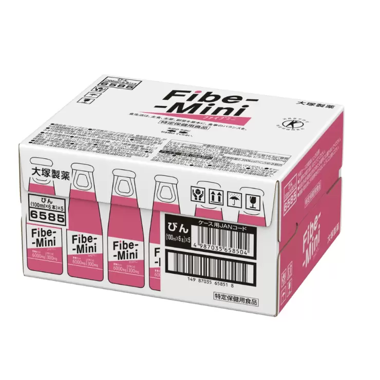 ファイブミニは、食生活で不足しがちな食物繊維を手軽にとり、おなかの調子を整える食物繊維飲料です。