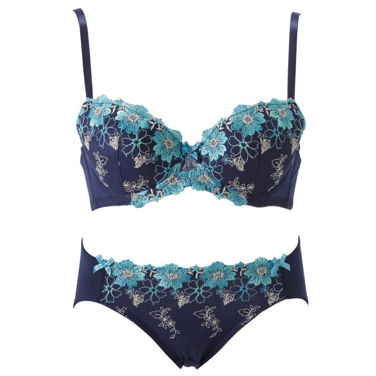 トリンプ・インターナショナル・ジャパン ブラ&ショーツ セット ガーベラレース 紺 B75