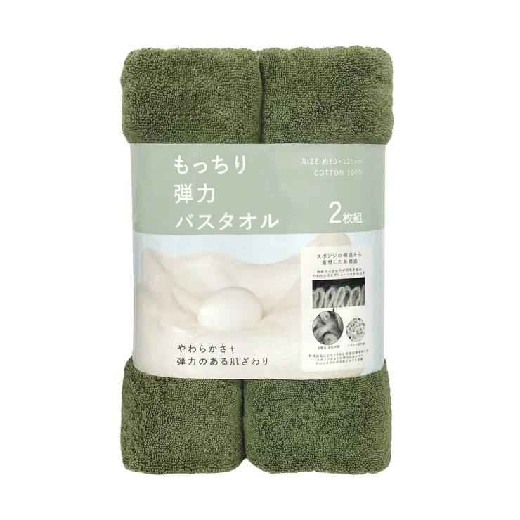 IZAWA TOWEL もっちり弾力 バスタオル 60cm x 120cm 2枚パック グリーン