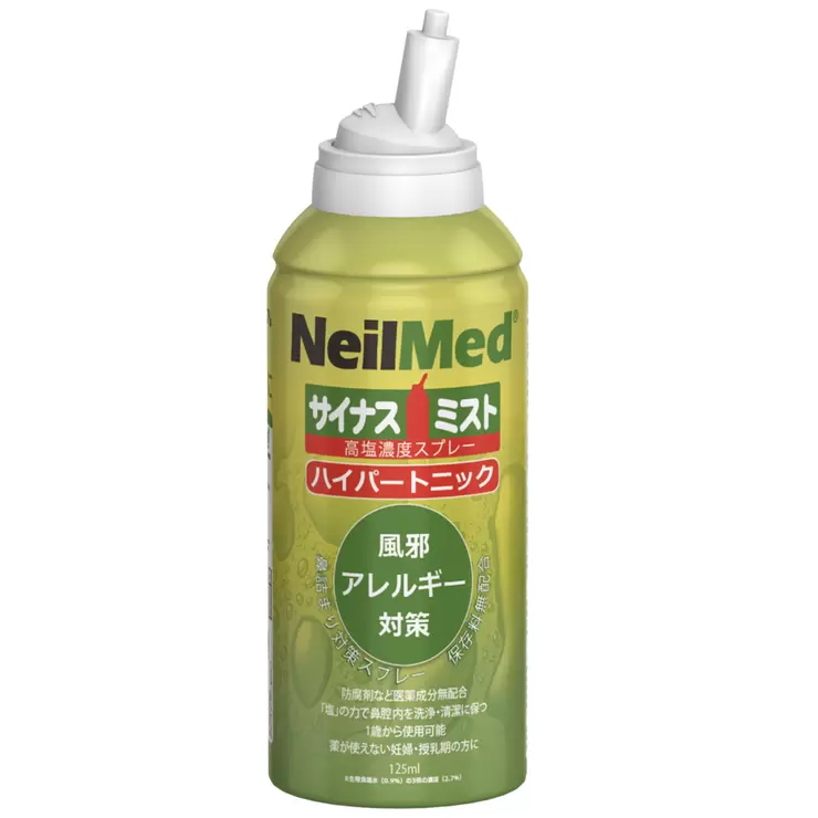 ハイパートニックは生理食塩水の3倍の塩分濃度のミストなのでひどい鼻詰まりもサポートします。