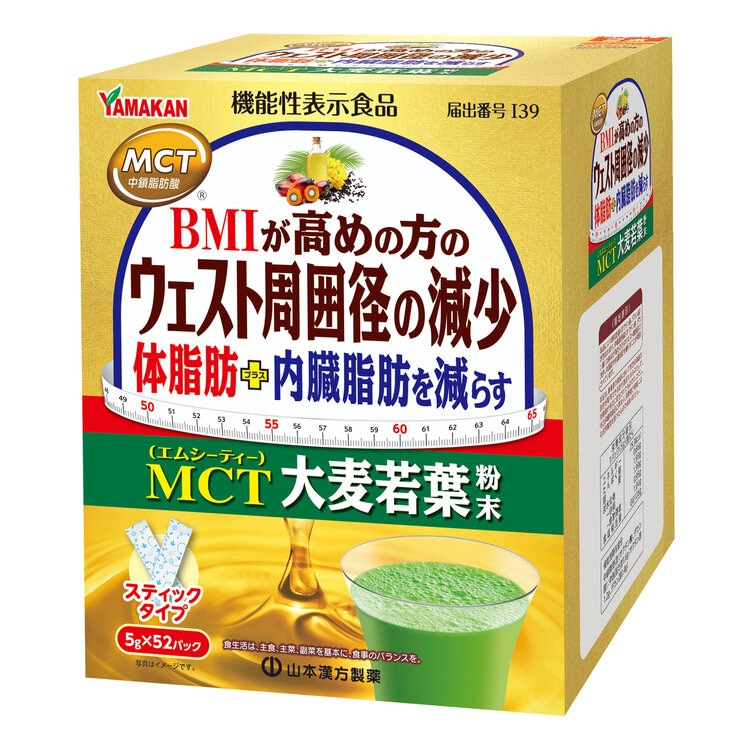 - 山本漢方大麦若葉粉末と日清オイリオのMCT配合