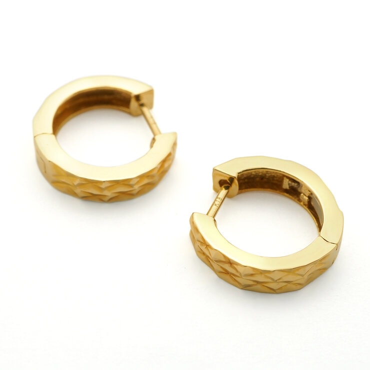 シンプルながら表面のカットが美しい、人気のフープピアス。