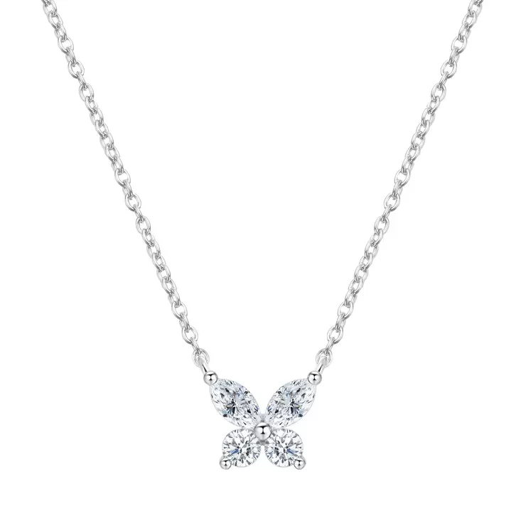 14K ホワイトゴールド 0.41カラット ダイヤモンド バタフライ ネックレス