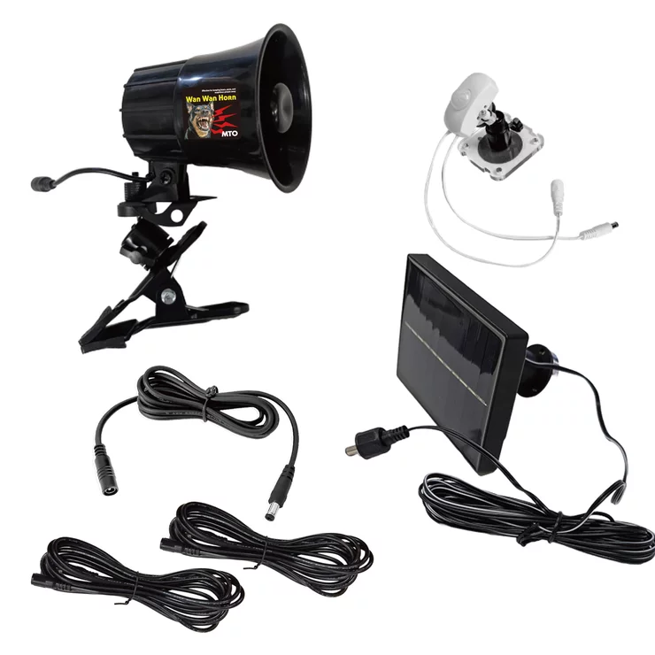 MTO 熊よけわんわんホーン/サイレン 24時間/夜間センサー付ソーラー電源タイプ& 3mケーブル2本追加