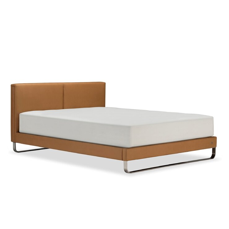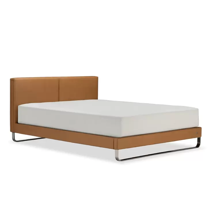 ステンレスレッグが特徴的なスエードタッチのファブリックベッドフレーム