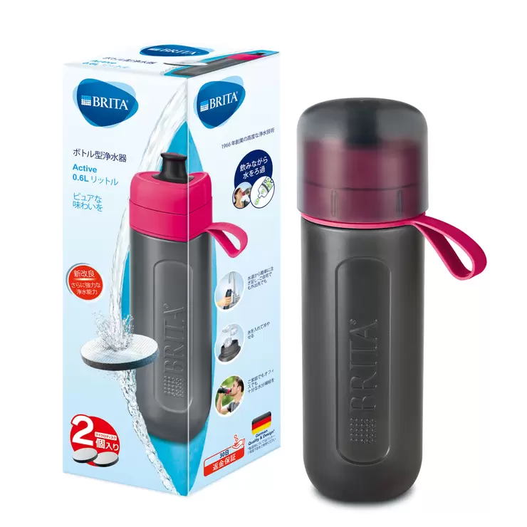 BRITA ボトル型浄水器 600ml フィル&ゴー アクティブ ディスク2枚付きは、子どもの水筒代わりに持たせたり、ヨガや運動にも。屋外でも、室内でも、ミネラルウォーターの代わりに。