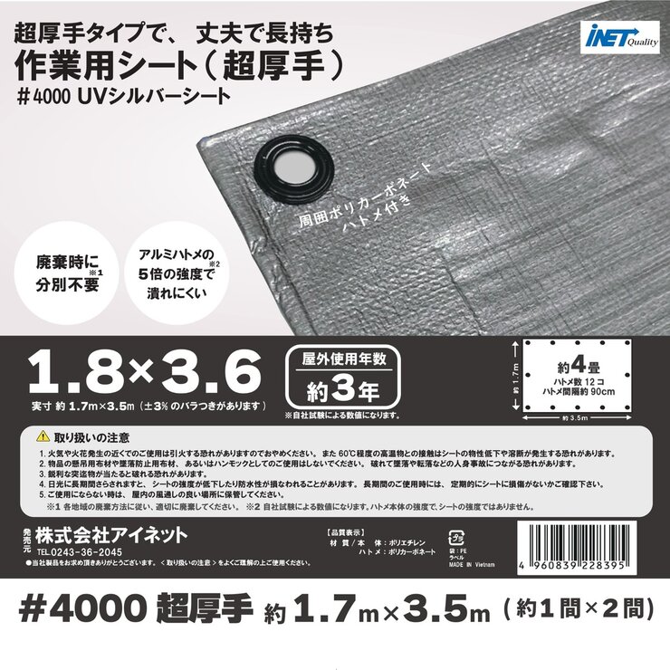 アイネット #4000高耐候性UVシルバーシート 1.8 x 3.6m