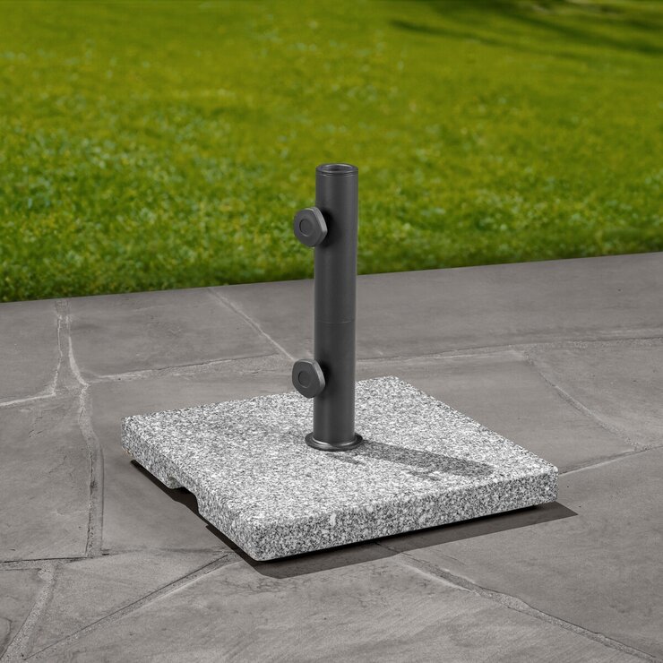 PEMBROOKEのアンブレラ ベースをご紹介します。頑丈な構造と実用的なデザインを組み合わせ、高品質の無垢花崗岩から作られたこの傘ベースは、市販の傘を安定し頑丈な土台を提供するだけでなく、天然石仕上げで優雅な印象を与えます。 直径 5センチまでのポールの傘に対応します。このベースの際立った特徴の1つは、簡単に移動できる隠しホイールとハンドルです。この考え抜かれた追加機能により、日差しを追いかけたり、屋外アクティビティのためのスペースを確保したりするときに、傘を簡単に移動できます。傘をしっかりとエレガントに固定し、パティオや庭園エリアの全体的な外観と雰囲気を向上させる、スタイリッシュなアウトドアアクセサリーです。