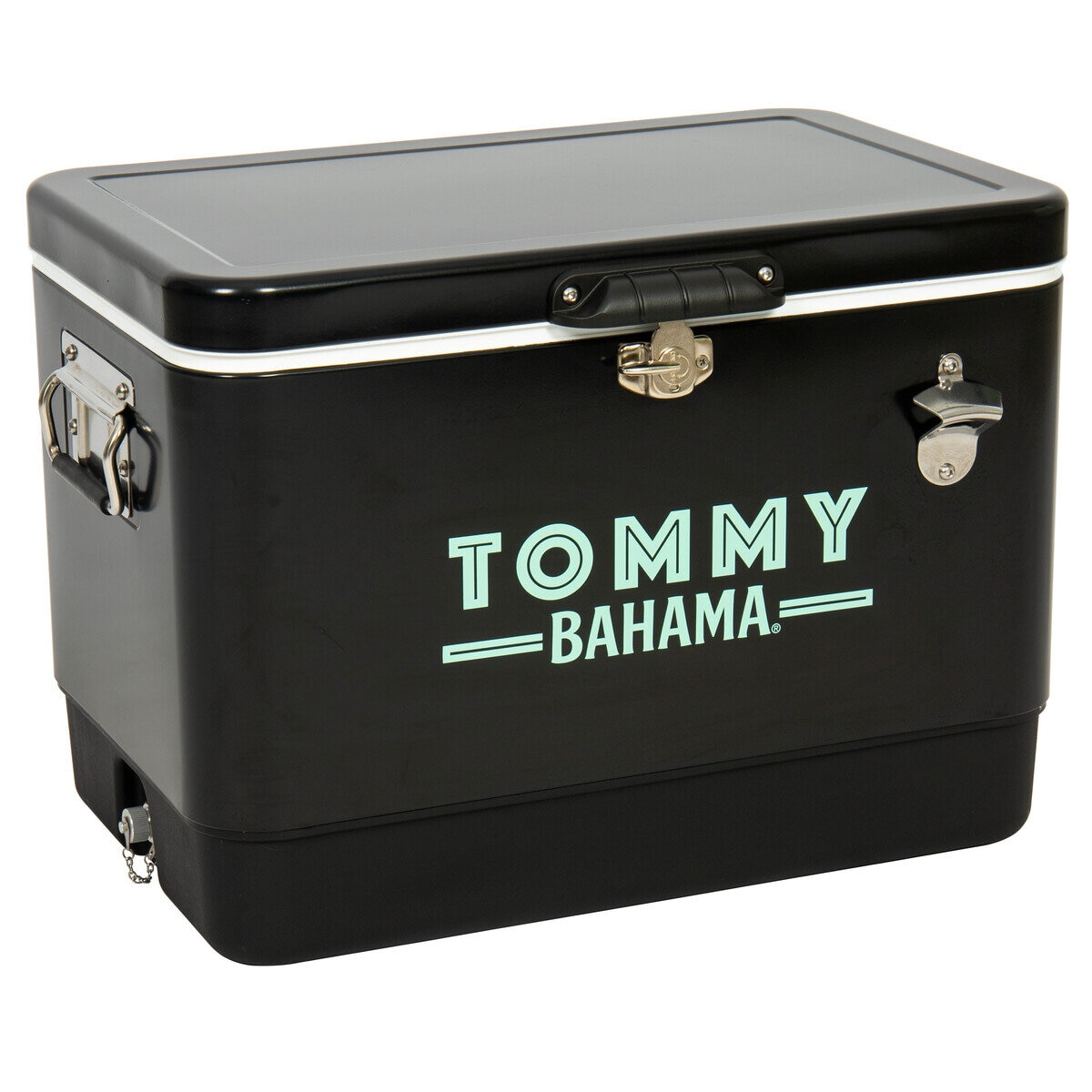 このトミーバハマ®54クォートクーラーは、あらゆるアウトドアイベントに欠かせません。最大85缶に収納可能、側面に栓抜きが付いています。ラバーグリップで持ち運びが簡単。粉体塗装されたステンレス製のボディと防錆ドレンキャップが付いているので便利です。