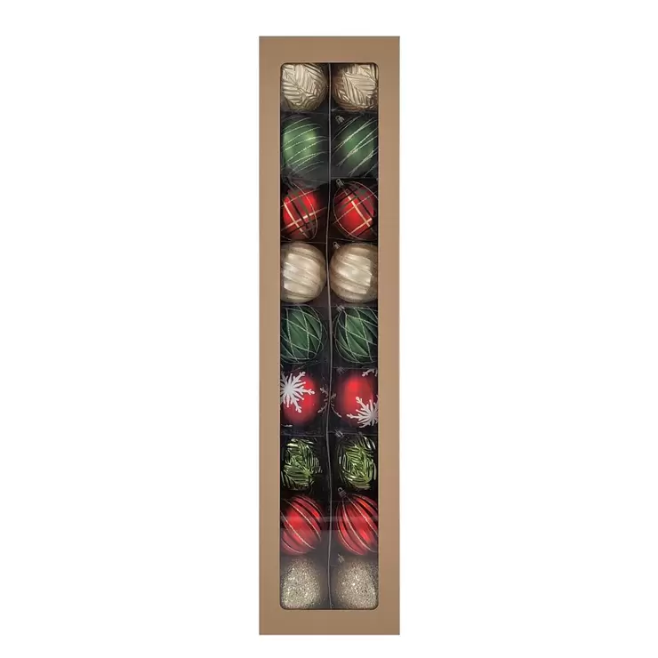 - 割れにくいデザイナーオーナメントが18個含まれています