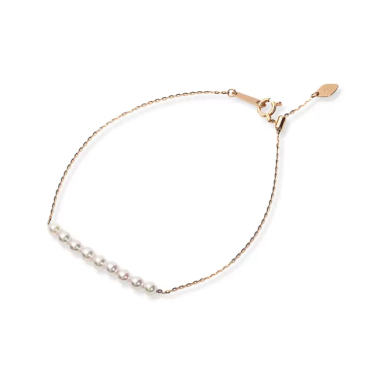 肌なじみの良いローズゴールドチェーンに、可愛らしいあこやベビーパールをあしらったブレスレット