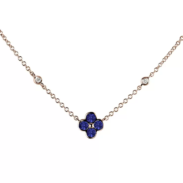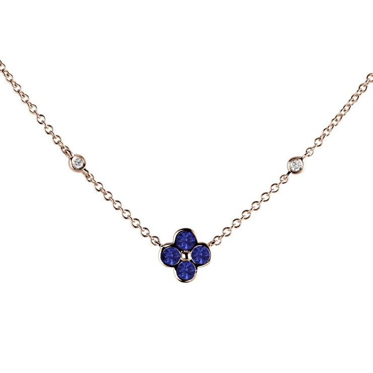 18K Rose Gold 0.04CT Diamond Quatrefoil Sapphire Pendant