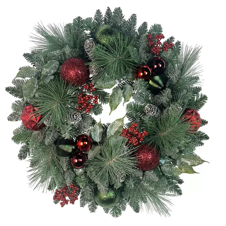 リースで、ホリデーシーズンを華やかに演出しましょう。リアルな葉や松ぼっくり、エレガントな装飾が特徴のこのリースは、クリスマスの魔法をご自宅にお届けします。丈夫で繰り返し使えるので、毎年ホリデーの雰囲気を盛り上げるのに最適です。吊り下げやすく、メンテナンスも不要です。スタイリッシュにシーズンをお祝いしましょう。