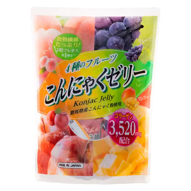 - 日本一の生産量を誇る群馬県産のこんにゃく粉を使用したフルーツ味のこんにゃくゼリーです。