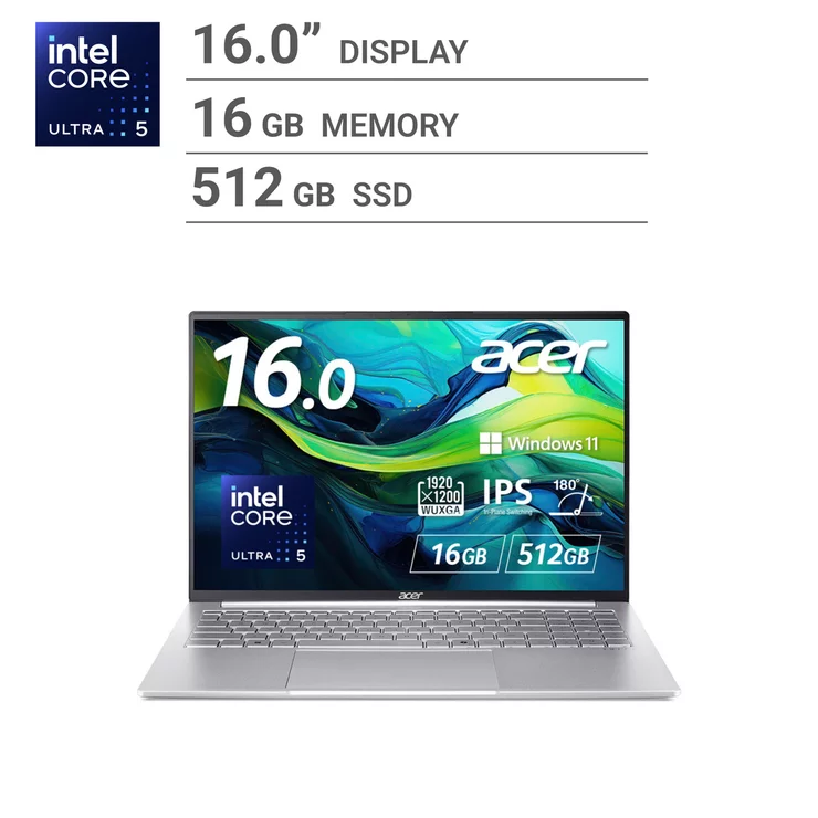 ACER Laptop/Swift Lite/16.0inch/Core Ultra 5 115U/16GB Memory/512GB SSD/Light Silver/SFL16-51M-F56Y