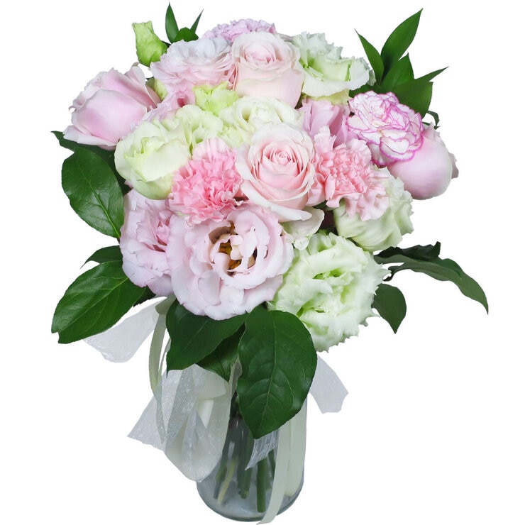 優しいピンク色のバラを中心に仕立てたさわやかなブーケです。記念日やお祝いの席などにおすすめ致します。