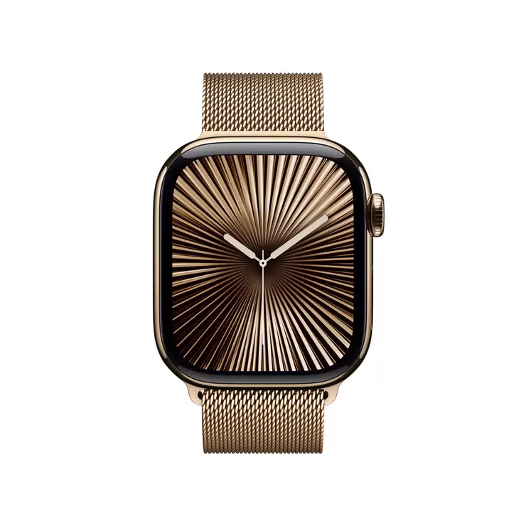 Apple Watch Series 10(GPS + Cellular Model)- 42mm Gold Titanium Case and Gold Milanese Loop