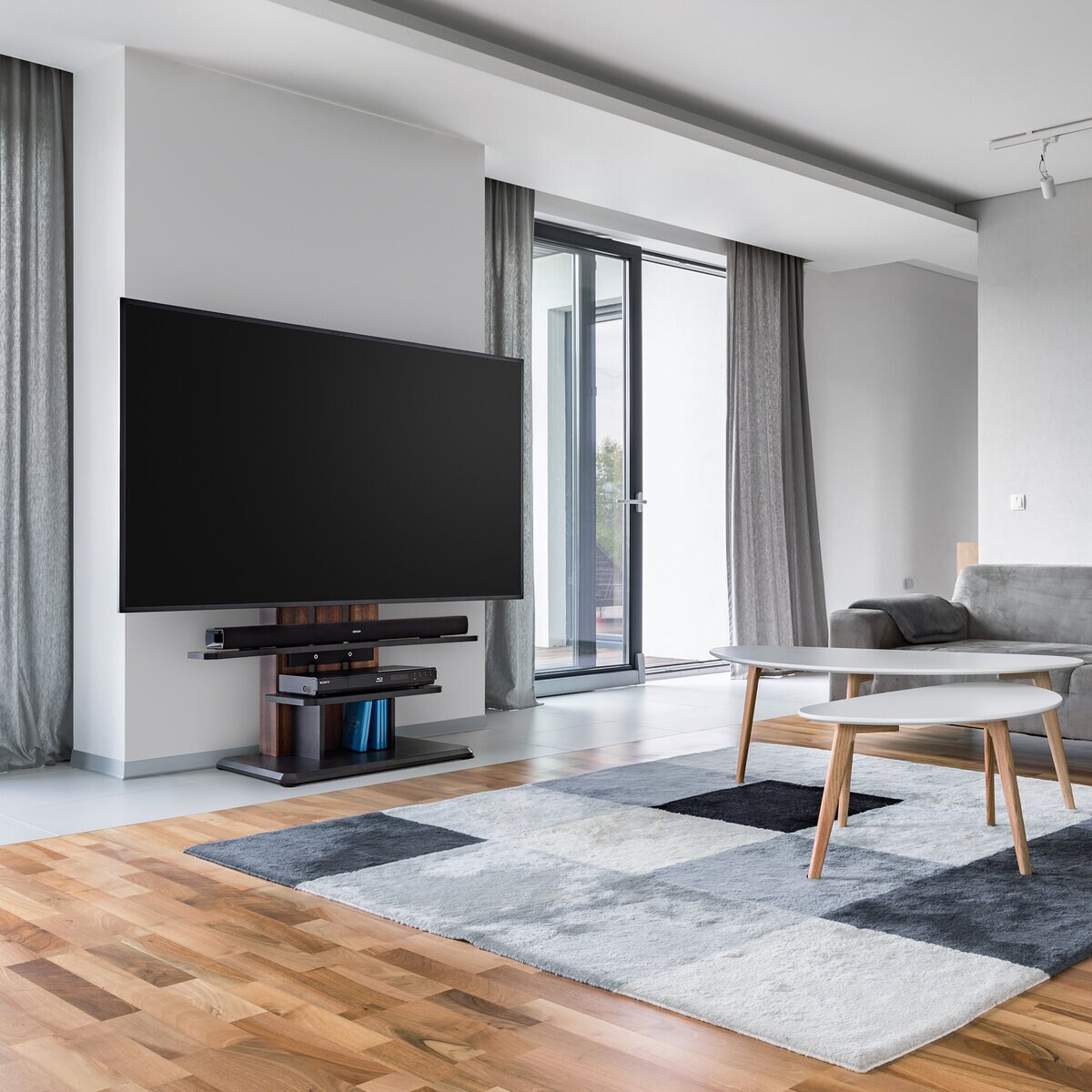 - 2段階の高さ調整が可能な壁寄せテレビスタンド