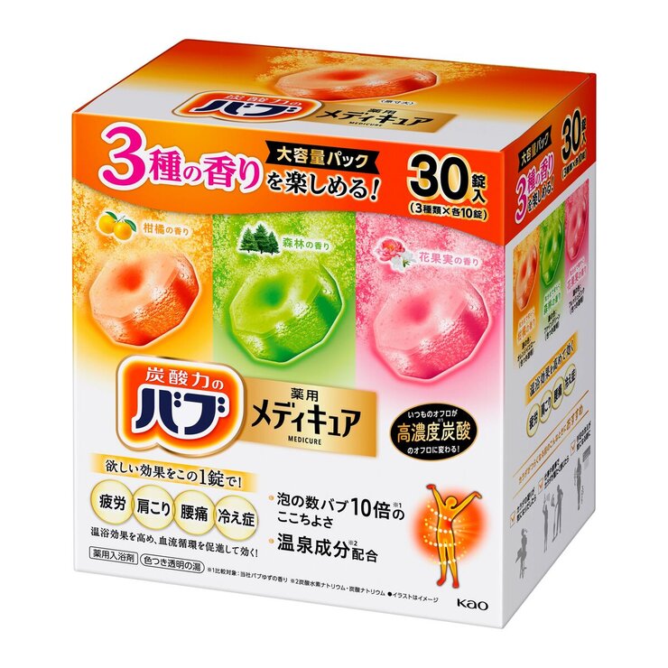 忙しい現代人の特に疲れがたまった時に。いつものオフロが高濃度※1炭酸のオフロに変わる!欲しい効果をこの1錠で。温浴効果を高めて、疲労・肩こり・腰痛・冷え症に効く。●泡の数バブ10倍※1のここちよさ●ビッグサイズ※1でパワフル発泡●温泉成分※2配合●気分まで和らぐ柑橘の香り 赤ちゃんと一緒に入浴する時も使えます。※1比較対象:当社バブゆずの香り ※2炭酸水素ナトリウム・炭酸ナトリウム