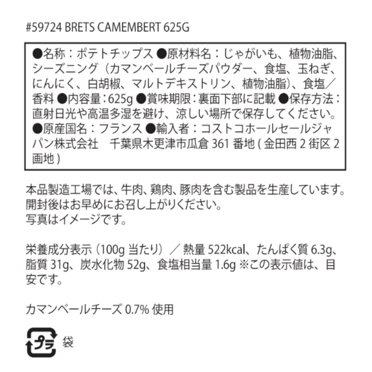 ブレッツ カマンベールチーズ ポテトチップ 625g