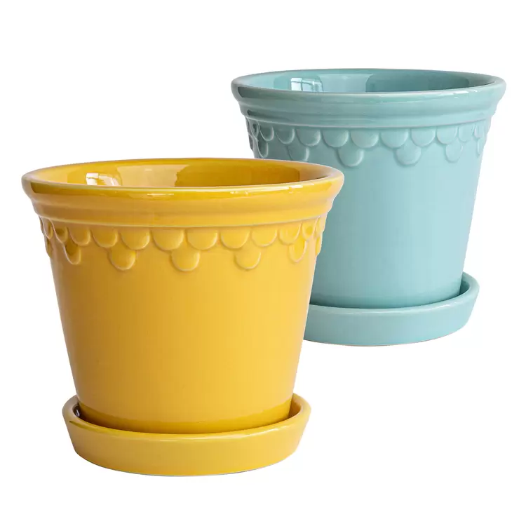鉢植えや植物は、家の中の景観や雰囲気を変えるのに、簡単でスタイリッシュな方法です。植物と一緒に暮らすことで、生活の質も向上します。この美しいoverandbackチェルシーポット2個セットは、家の中のガーデンを明るくするでしょう。きらめくグレーズで施された青と黄色のポットは、待ち遠しい春にわくわくと幸福をもたらします。