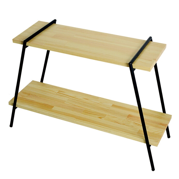 アイアンの脚に木板をセットするだけ、シンプル構造の2段ラック。