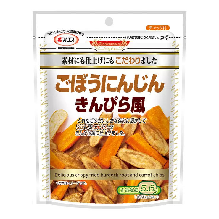 ベトナム産のニンジンと台湾産のごぼうをバキュームフライし、素材のおいしさをそのまま活かした、軽い食感に仕上げました。