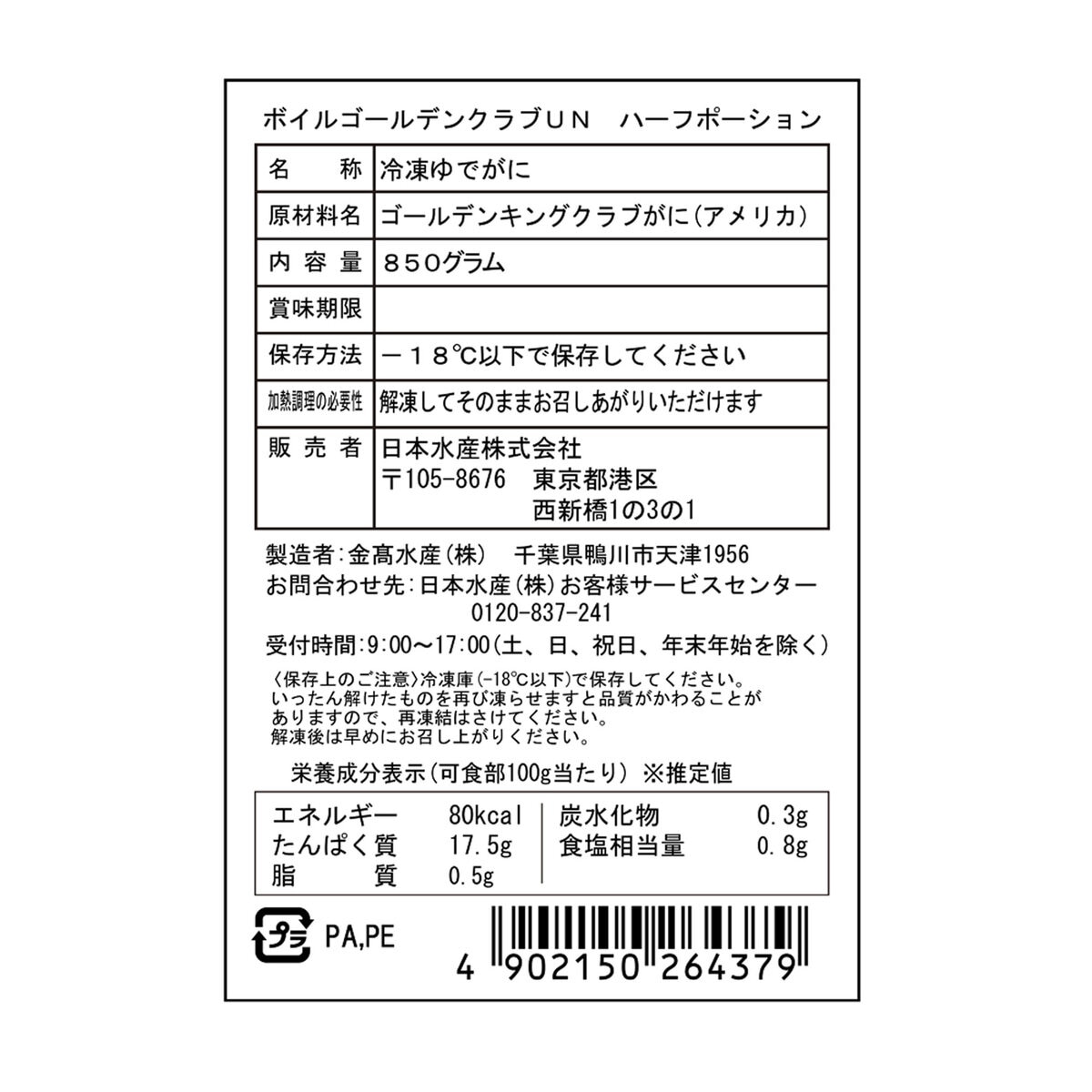 【冷凍】ボイルゴールデンキングクラブハーフポーション(冷凍ゆでがに)850g x 3パック