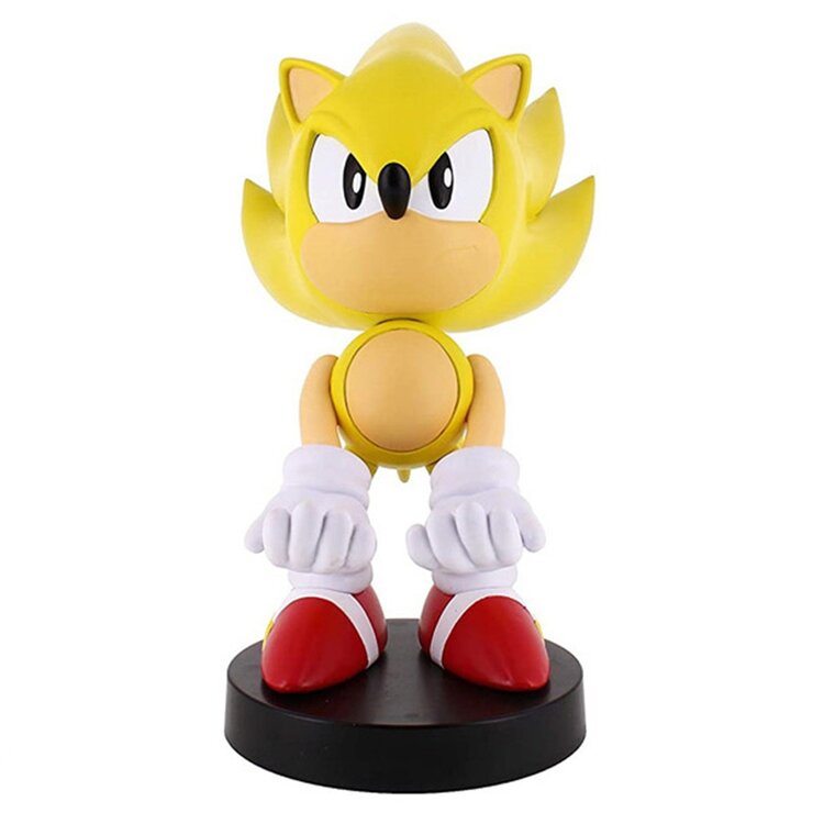 SEGAを代表するソニックが、スーパーソニックの姿でコントローラーやスマートフォンなど、手元のさまざまなアイテムをホールドします。