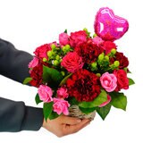 ピンクのグラデーションでまとめた花にバルーンで可愛らしさをプラスしたアレンジメントです。