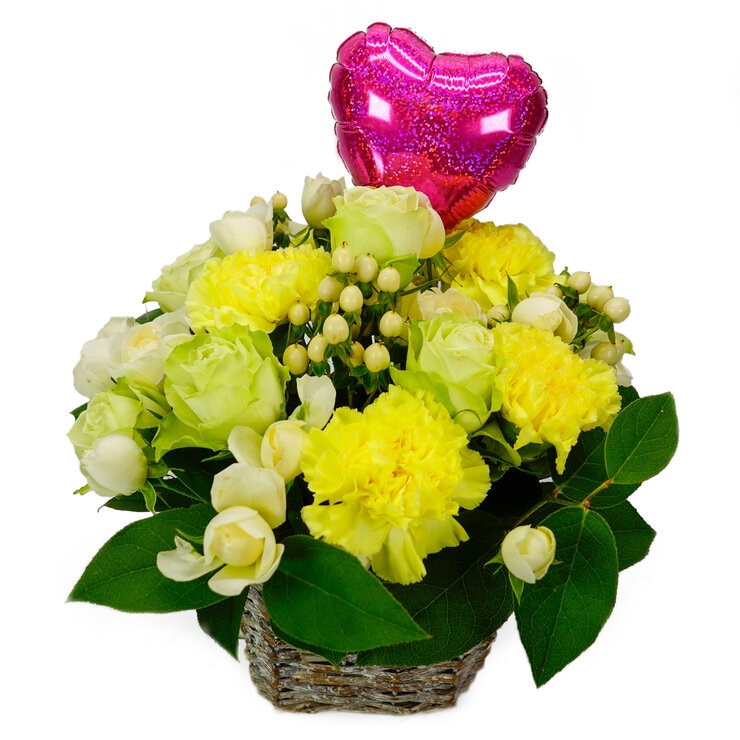 ハートバルーンアレンジメント ホワイトイエロー