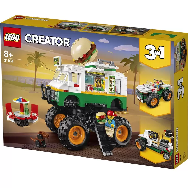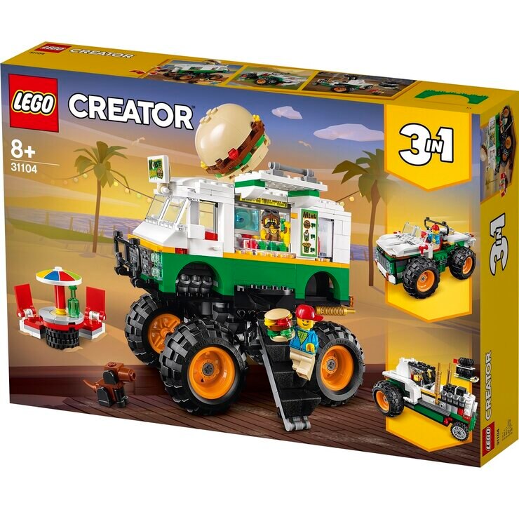 - 1つのセットで、3つのモデルが楽しめる!レゴクリエイター(3in1)のモンスターバーガー・トラック(31104)です。他のセットと組み合わせても楽しく遊べます。お子さまは、組み立ての腕を上げながら楽しめます。