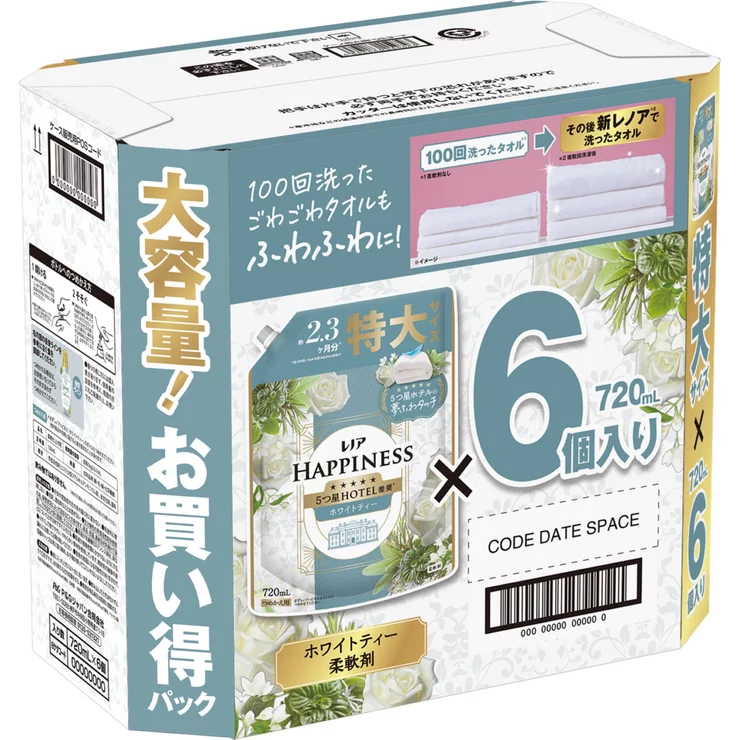 レノアハピネス 夢ふわタッチ 柔軟剤 ホワイトティー 詰め替え720ml x 6個