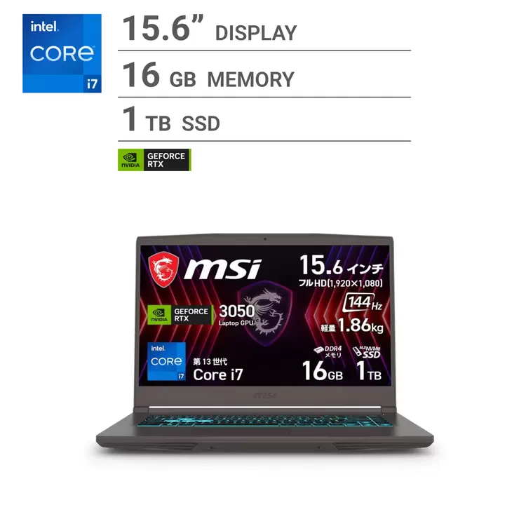 MSI ゲーミングノートPC/Thin/15.6型/intel Core i7-13620H/メモリ16GB/SSD 1TB/コスモグレー/Thin-15-B13UDX-5329JP
