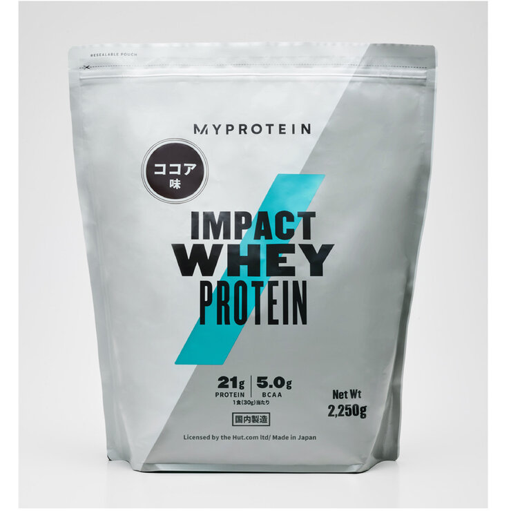 MYPROTEIN IMPACT WHEY PROTIENココア味は2021年から開始された日本国内製造品で、タンパク質源は吸収と消化に優れたホエイプロテイン100%使用。ヨーロッパで人気のフレーバーをより改良しました。水でも溶けやすく手軽においしいのであなたの日々のフィットネスを継続的にバックアップします。