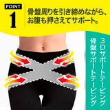 フロントクロスのテーピングで、骨盤まわりを引き締めながら、お腹も押さえてサポート